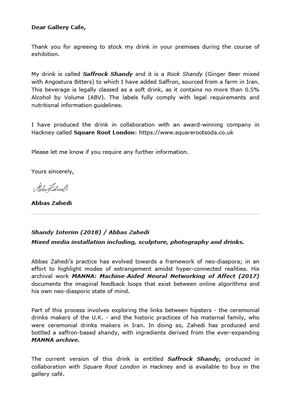 Label design for Saffrock Shandy bottles, 2018. Credit: Abbas Zahedi