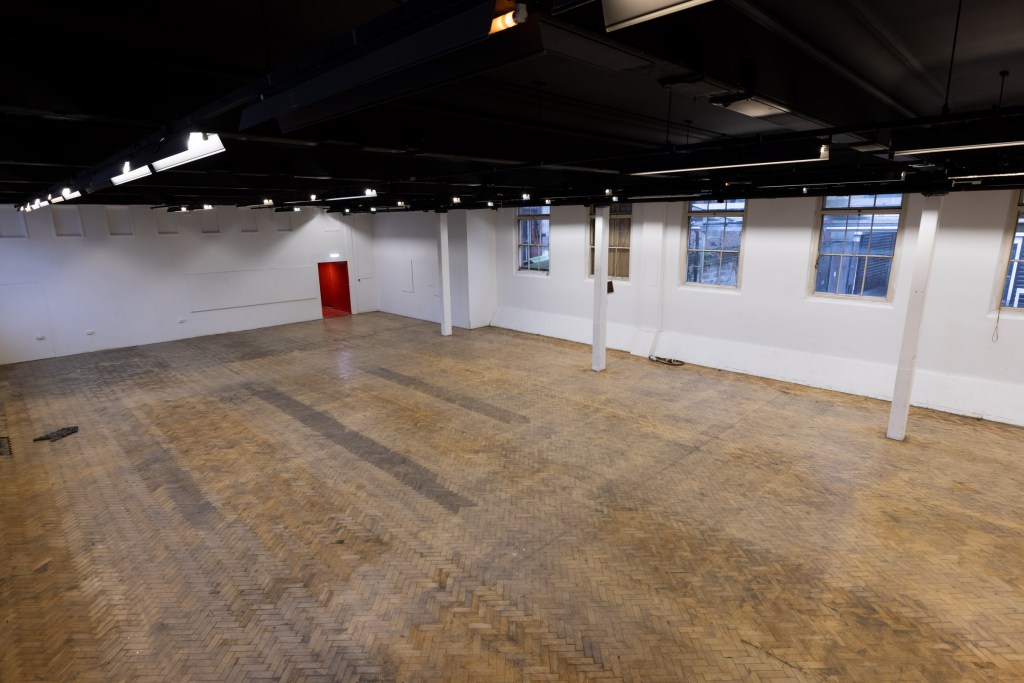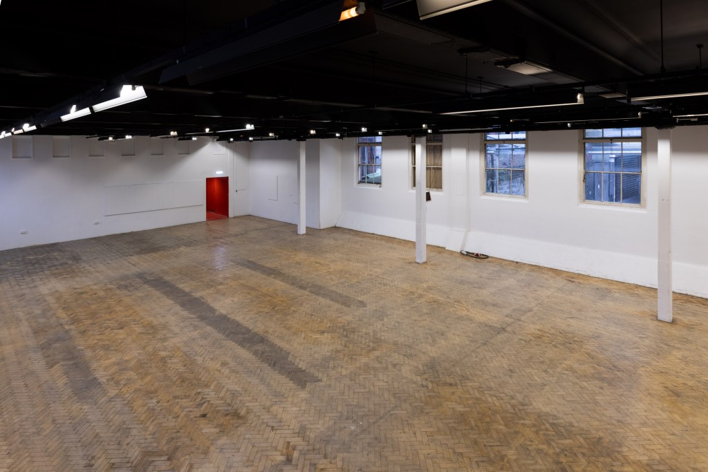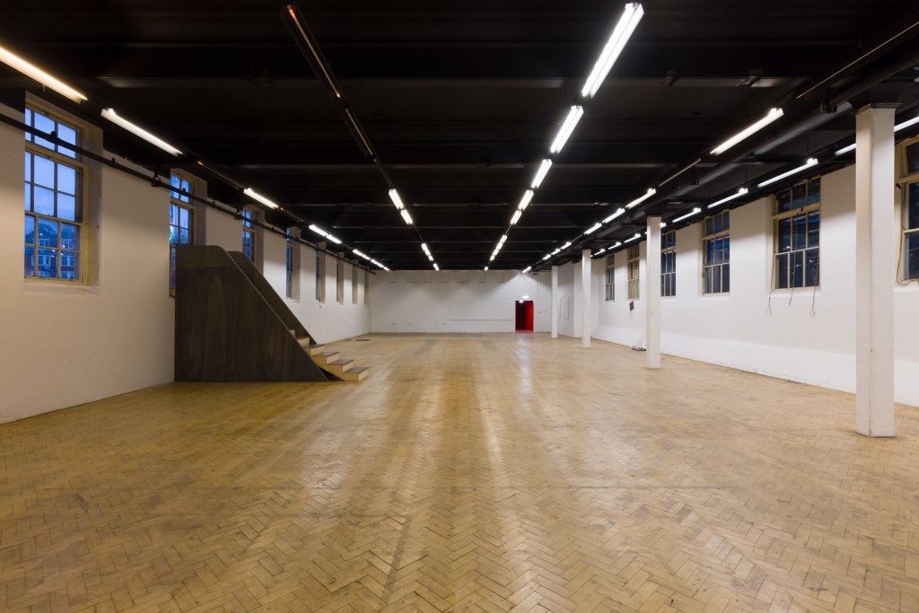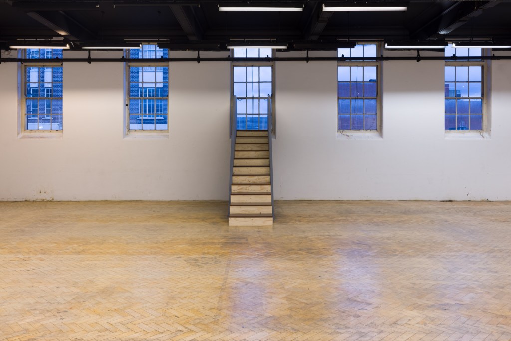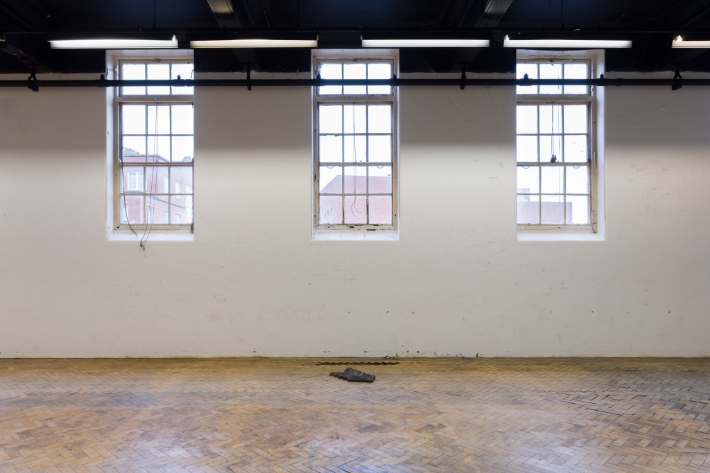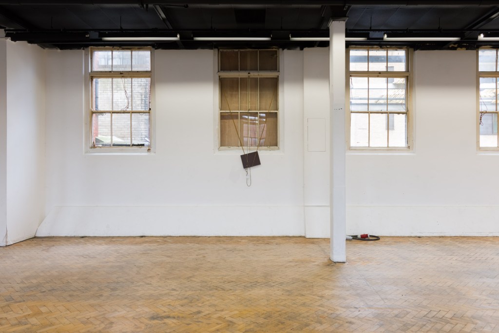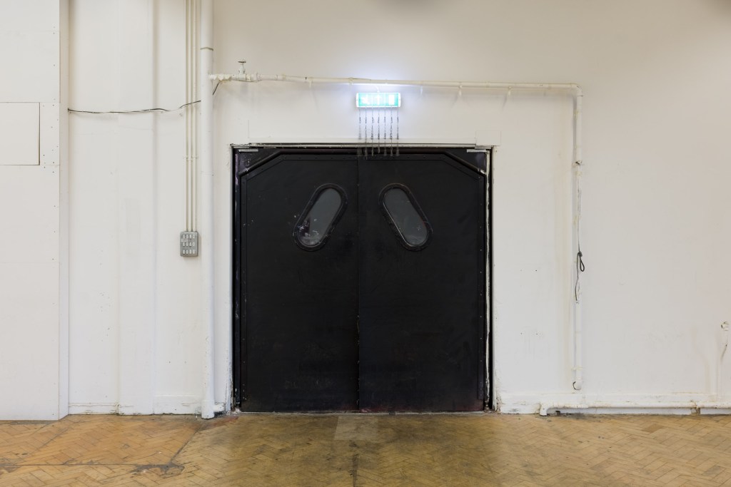 AZ: I feel like the moving of bodies and objects around the space was informed by my relationship to this area long before the show. My late brother was a patient in the hospital across the road, and so I spent many years going there with him. We were told he needed a heart transplant, that’s the only treatment for what he had. So the idea of transplantation really came to mind when I came here. I tried to think about it in different ways. For example, how could I make a minimal intervention that would radically alter the overriding function of a body amidst a particular system of relations? The architecture of this Victorian sorting office is highly securitised, so you have the windows at a certain height, allowing light to come in, but you can’t see out and people can’t see in. And then high up at the far end of the hall there are these viewing ports that look like windows, which have been painted over. I imagine the authority figures would be overlooking their staff and keeping them in check from up there. Then when you go downstairs to the bar and the workers’ social area, and there are no more windows, so the staff down there would’ve been even further from the light and further still from the gaze of their masters. It relates to that panopticon model of an all-seeing eye, and the ideas of privacy, visibility, and how light serves these thresholds that determine who is allowed to see what, and from what position. The question that then arose for me was: how could you transplant someone’s perspective from one level to another? One intention was to make the space more fluid, but also, with the staircase, to try to put the art visitor in a position where they now overlook pedestrians underneath them and also the construction workers from across the street.