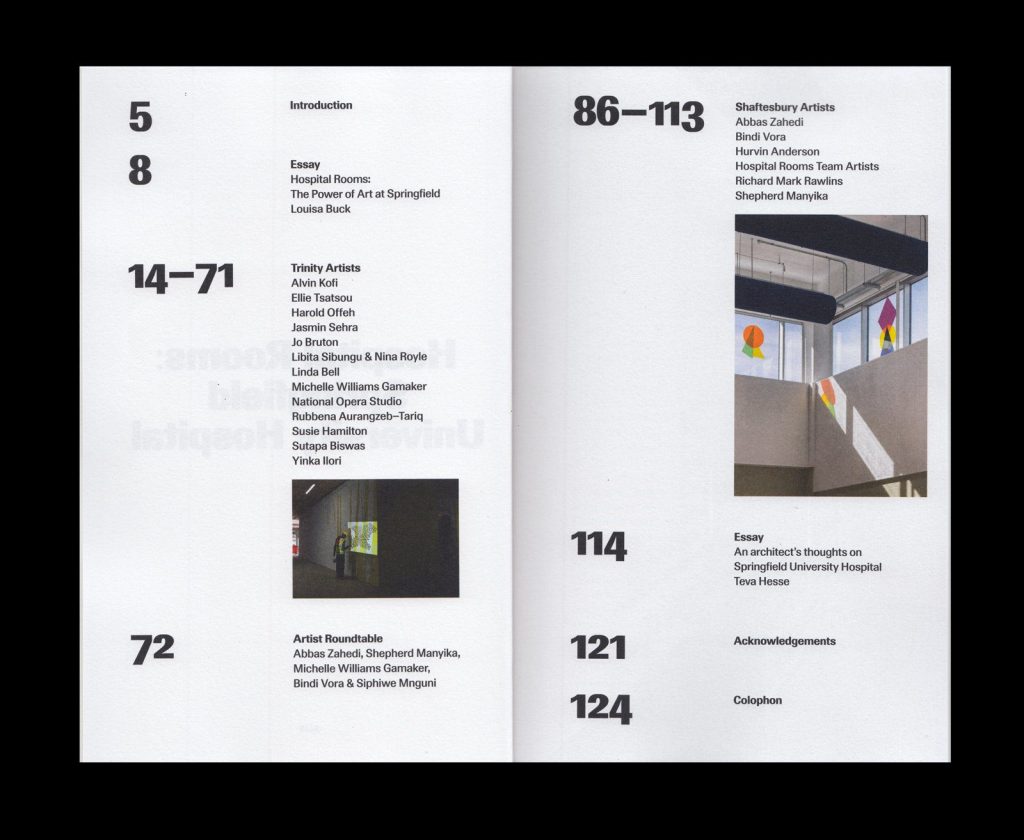 This publication is a testament to the impact of art in mental health care, documenting the project at Springfield University Hospital and celebrating the internationally acclaimed and diverse artists who have been involved. Each artist has a unique perspective, with many specialising in participatory practices that place vulnerable individuals at the heart of their work. Each of the 20 artists involved challenges conventions and provokes a spirit of creative exploration within the hospital walls.