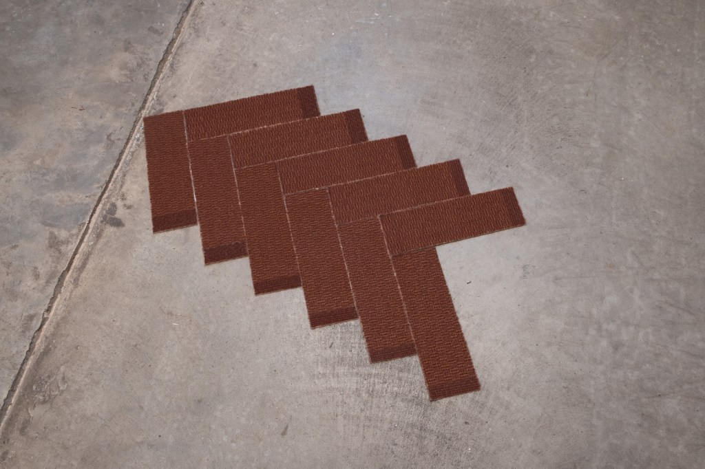 As a whole, the exhibition is a cyclical contribution capable of providing the sounds of what could be our pain and grief, but also our memory and recovery – a sono-visual soundscape for healing and reflection. In the space, two arrows cut from domestic floor mats are assembled as a pair of ‘Qiblas’ – the arrow in Muslim households that points towards the direction of the Kaaba in Mecca. Conversely, in Metatopia 10013, the arrows point north to the nearby Bronx, NY and northeast to West London – homes to the exhibition’s practitioners, but more significantly, the horrific fires at the Twin Parks and Grenfell public housing buildings, where inadequate conditions lead to fires that ripped through and devastated these migrant and already marginalized communities.