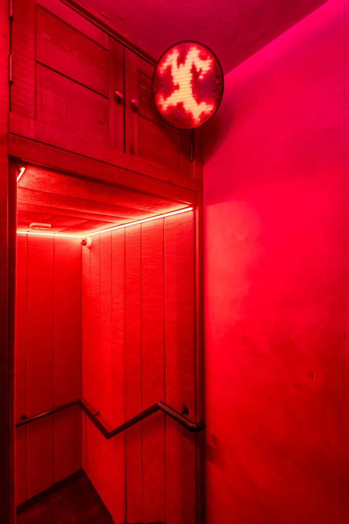 Zahedi’s commission was guided by cybernetic notions of being, and ideas of being lost at sea. He created a series of hand-carved breath-work discs with responsive digital displays, installed throughout the club; drawing upon images of lighthouses, beacons, pirate radios and search parties – note the word play – NOCTURN [03]: it’s your turn to be unfolded as a porous event, where the physicality of things blurred into an abstract sea of ripples – audio, visual and otherwise.